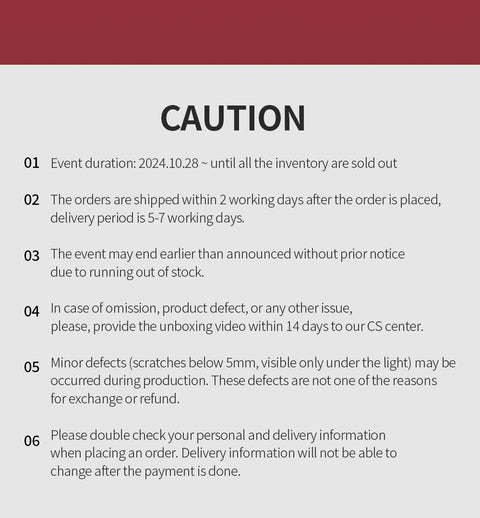 - Event Duration: 2024.10.28 ~ until stock lasts.