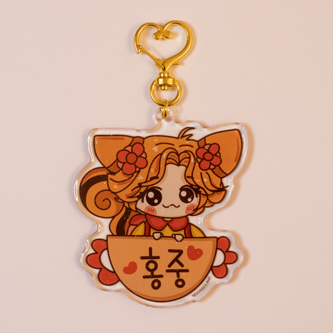 This Hongjoong's squirrel photocard holder and tiny Hongjoongie in a teacup is the perfect accessory to take during concerts and events! On the back it's written "No 1 is like Captain", inspired by Hongjoong's tattoo and motto "No 1 is like me"
