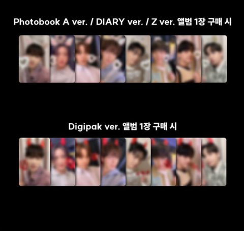 - Pre-order benefit photocard (DEVIL version ,member select!) if you order the photobook album (A VER. / DIARY VER. / Z Ver. 1 random copy)